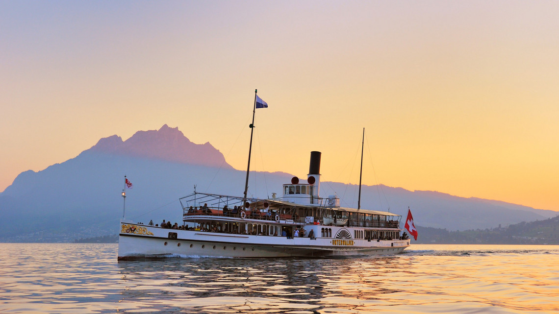 Ein Naturspektakel auf dem Vierwaldstättersee. Die Sonnenuntergangsfahrt findet auf einem Motorschiff oder Dampfschiff statt. Romantik pur, wenn die letzten Sonnenstrahlen hinter den Bergspitzen verschwinden. Diese Fahrt können Sie mit oder ohne Tischreservation im Restaurant buchen.