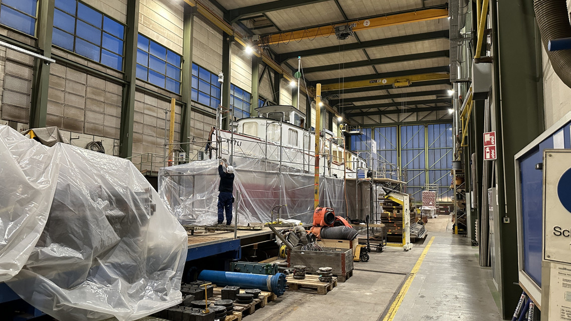 | 17.10.2023 | Auswassern und verlegen des Schiffs in die Werfthalle-Halle der Shiptec |