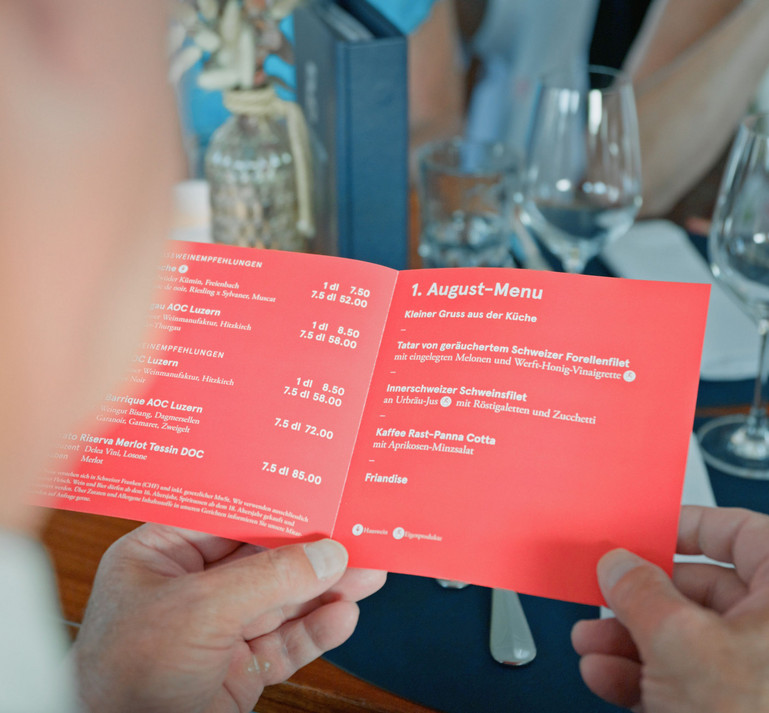 On Swiss National Day, the steamships Stadt Luzern, Uri, and Unterwalden offer a special journey: a 3-course menu as the culinary highlight of the evening. This voyage is characterized by its tranquil atmosphere, perfect for guests who prefer a relaxed evening. During the trip, you not only enjoy a delicious dinner but also an excellent view of the fireworks in Brunnen.