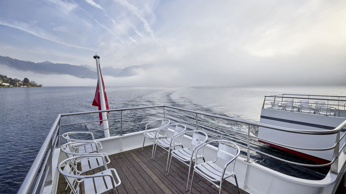 Avec son pont principal généreux, le bateau offre suffisamment de place pour de belles mises en scène, comme par exemple, un casino ou une ambiance Caraïbes. Grâce à ses grandes fenêtres panoramiques, les hôtes apprécient une vue exceptionnelle sur le lac des Quatre-Cantons.